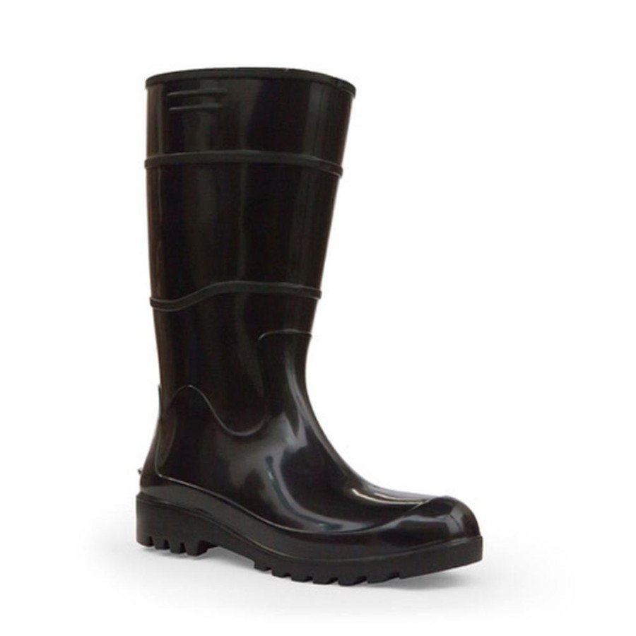 Calçado ocupacional de uso profissional, tipo bota PVC cano longo, impermeável, com resistência química, sistema de absorção de energia no solado, propriedades antiderrapantes e resistência a óleo combustível.